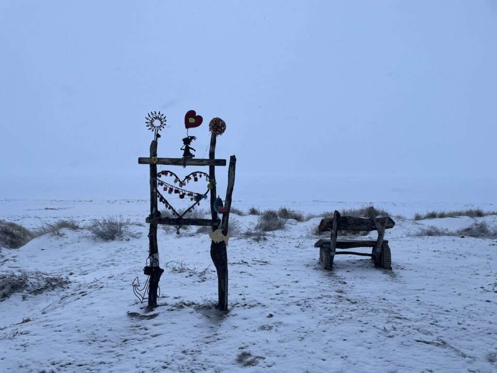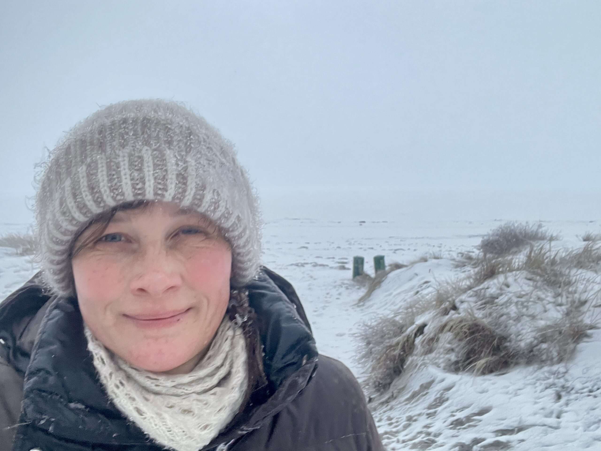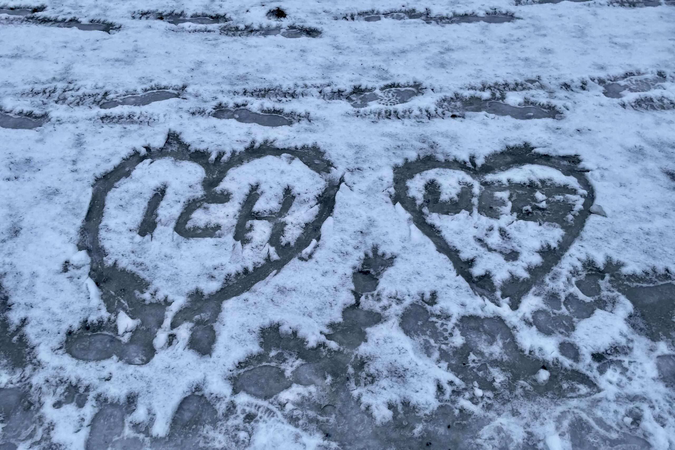 Sie sind schon vereist, die Herzen und zaubern mir ein Lächeln aufs Gesicht. Schön, dass sich jemand die Zeit genommen hat, diese Herzen ein den Schnee am Strand zu laufen.