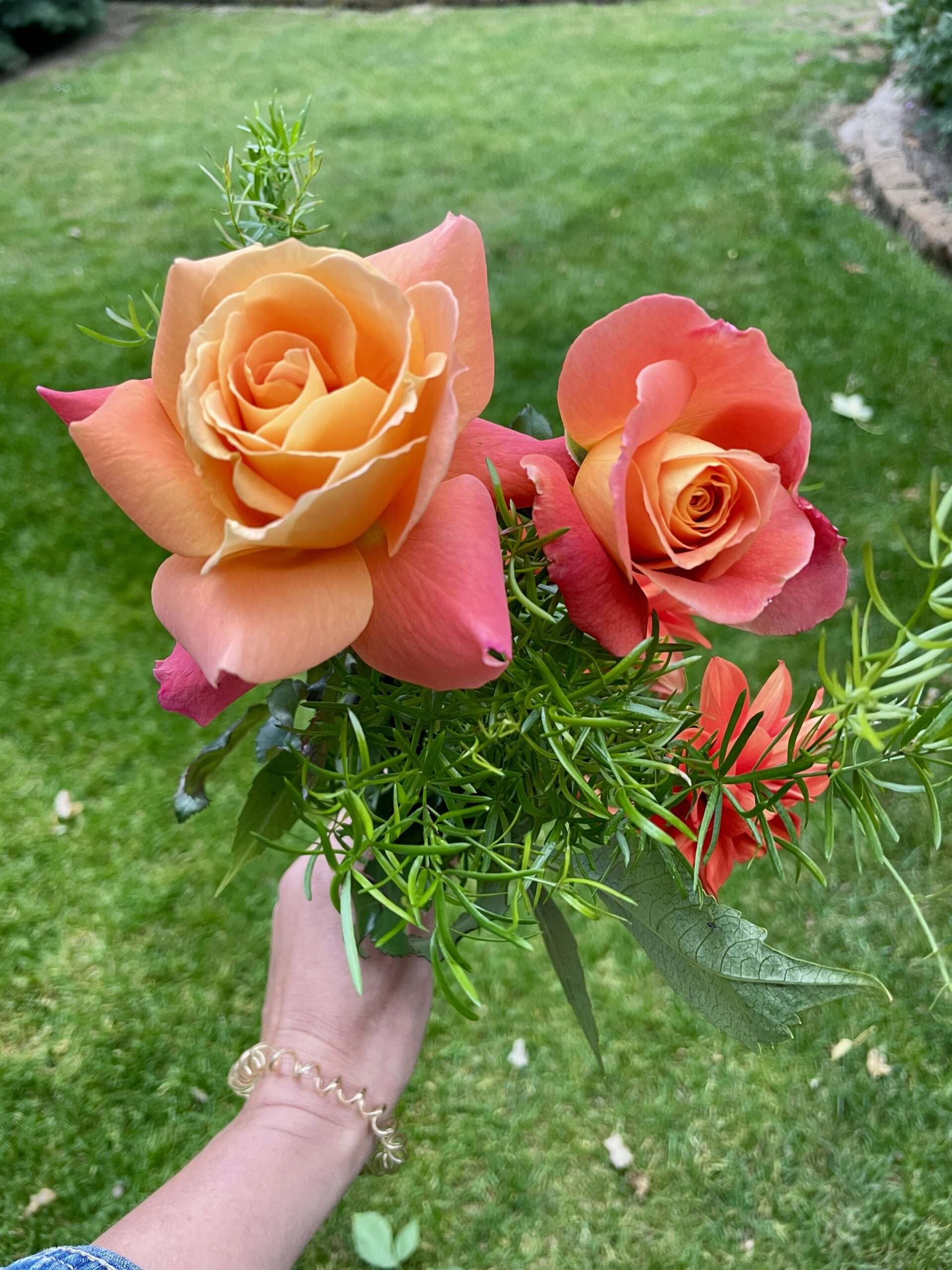 Wenn sich zu Blumen auch noch die Gartenernte von Tomaten und Kräutern gesellt, weißt Du, diese Menschen lieben den Garten: Im Garten wird geteilt. (Und irgendwer hat den Quittensenf in Berlin stehen gelassen… es könnte ich gewesen sein. Das wird nachgeholt!)