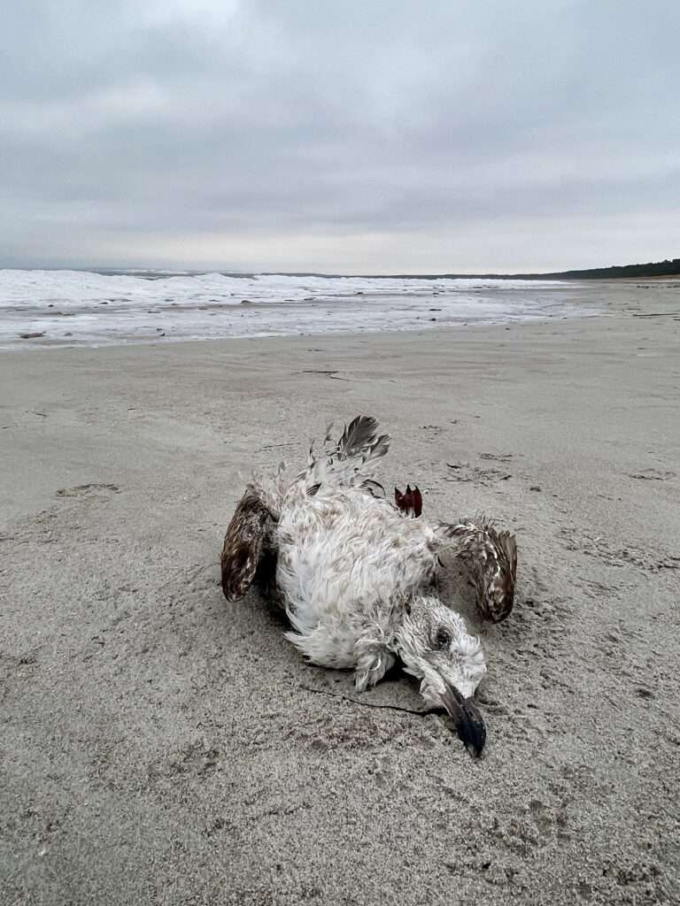 Das hier ist aber irgendwie anders. Das Ereignis hier kommt nicht über Nacht und dennoch irgendwie plötzlich. Die Ostsee beginnt zuzufrieren. Der Wind hört und hört nicht auf, wenn ich jeden Morgen mit den Hunden am Strand bin. Alter Verwalter ist das schneidig! Dieses Tösen der Wellen, der Wind unter der Kapuze, der dennoch Ohrenschmerzen verursacht, auch wenn Du die Mütze ganz tief ins Gesicht ziehst. Jetzt erst einmal eine neue Balance finden bei diesem Gegendruck, der vom Meer kommt. Jeden Morgen das gleiche Spektakel. Der Wind hört nicht auf. Die Ostsee ist aufgewühlt, fast wütend. Viele verendete Vögel und Fische am Strand. Ab und zu mal ein verirrter Mensch – wie ich.