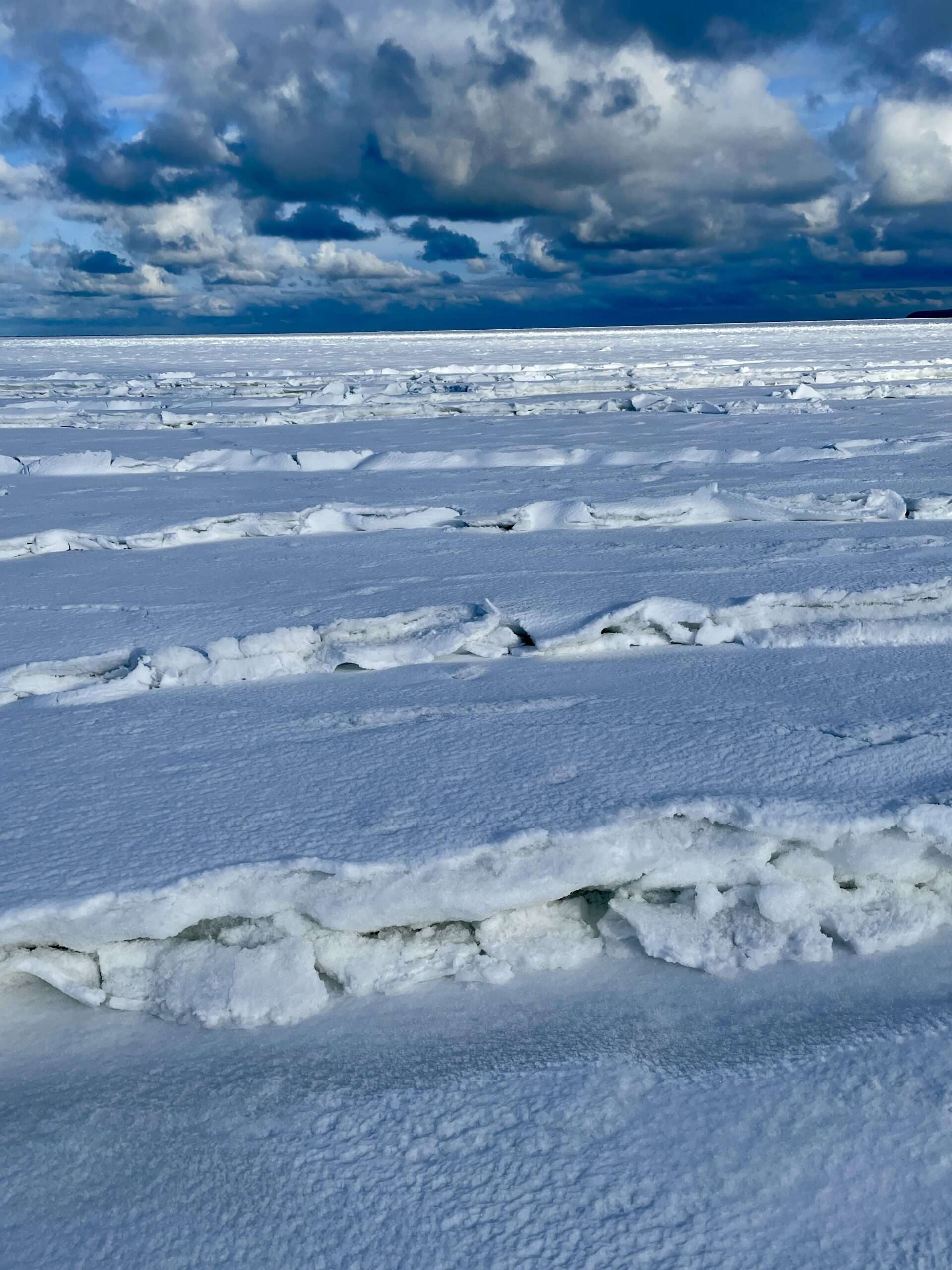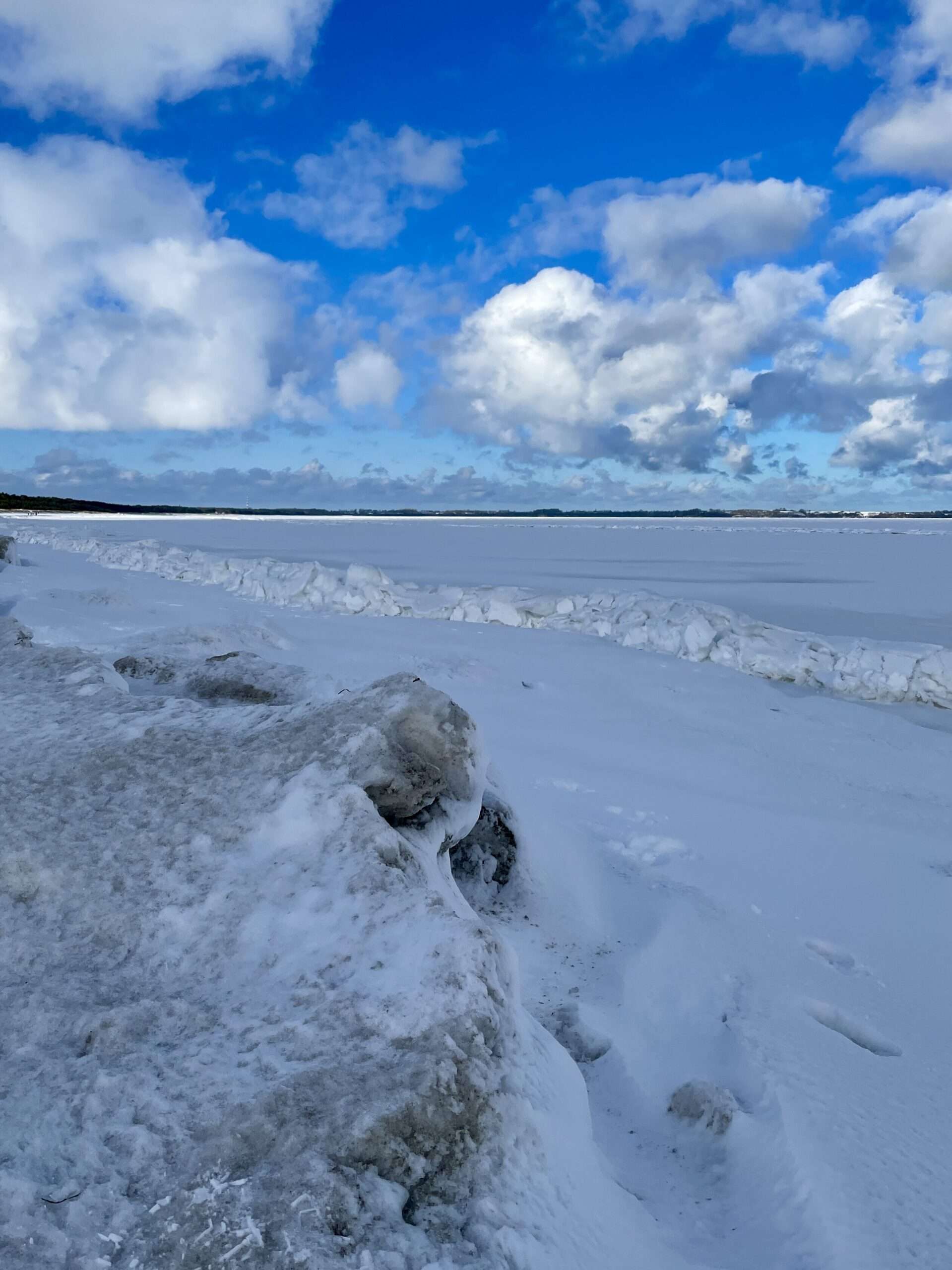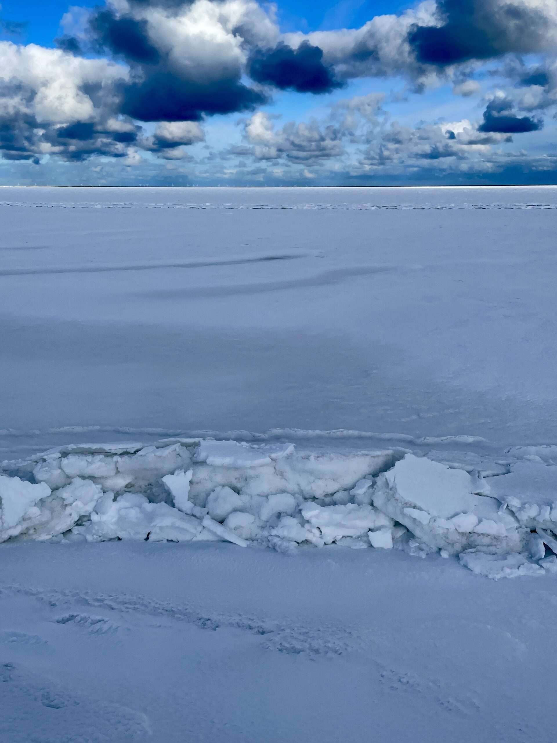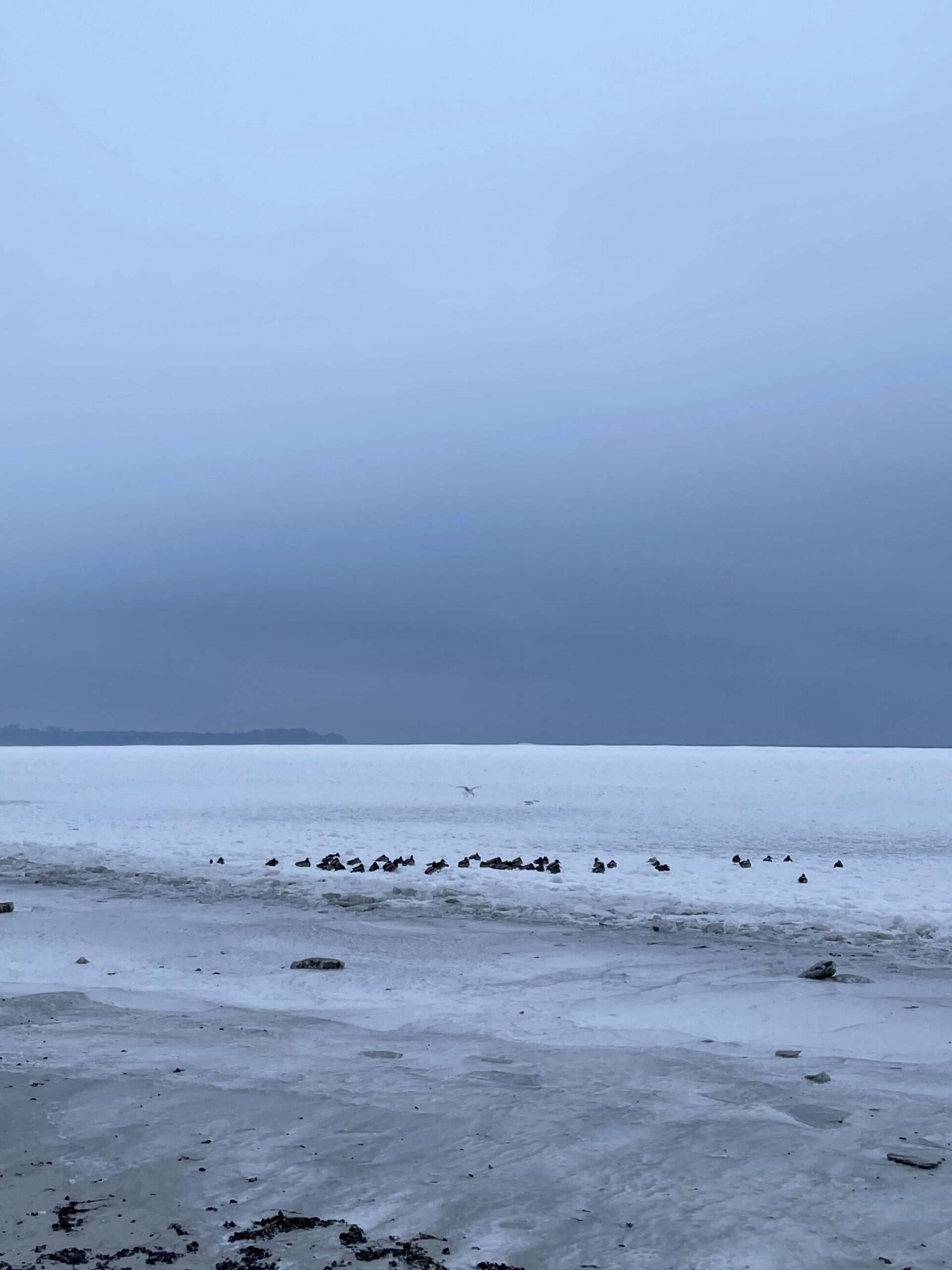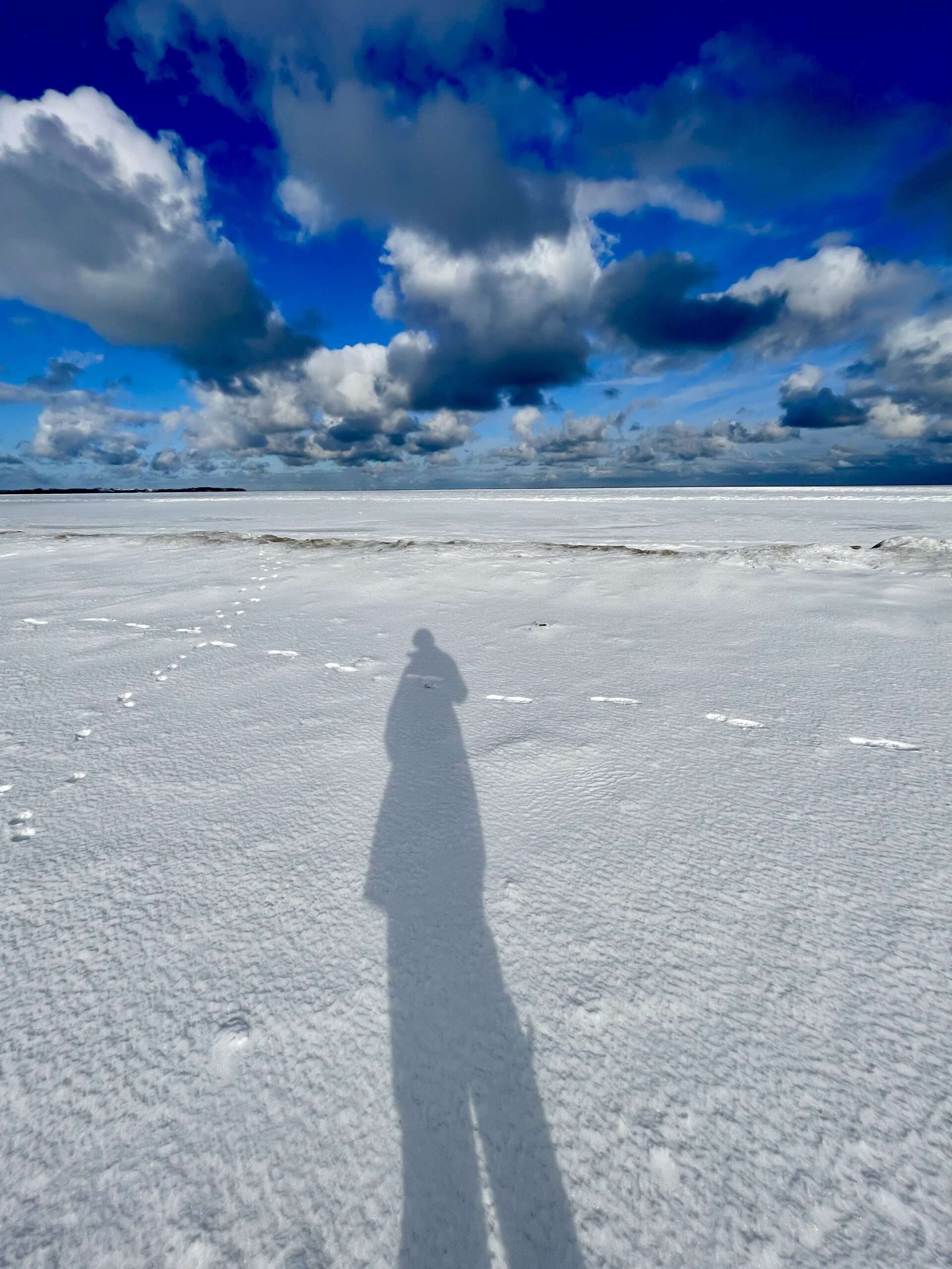 Im Grunde ist jeder Tag und gleich und dann doch wieder nicht gleich. Das Meer ist nicht glatt zugefroren. Kleine Schollen sind zusammengeschoben und machen das Laufen unrund. (1°C/ 0°C)