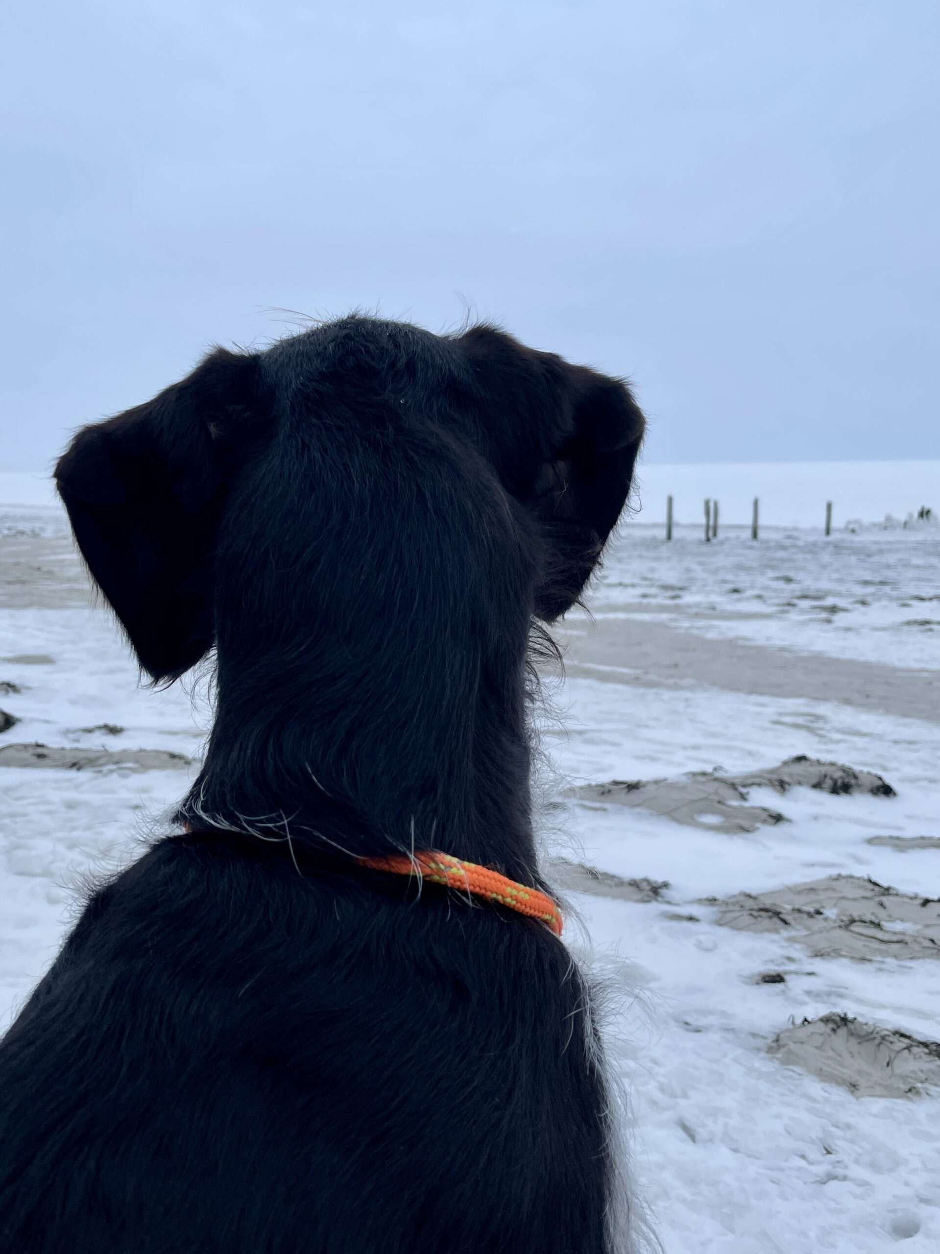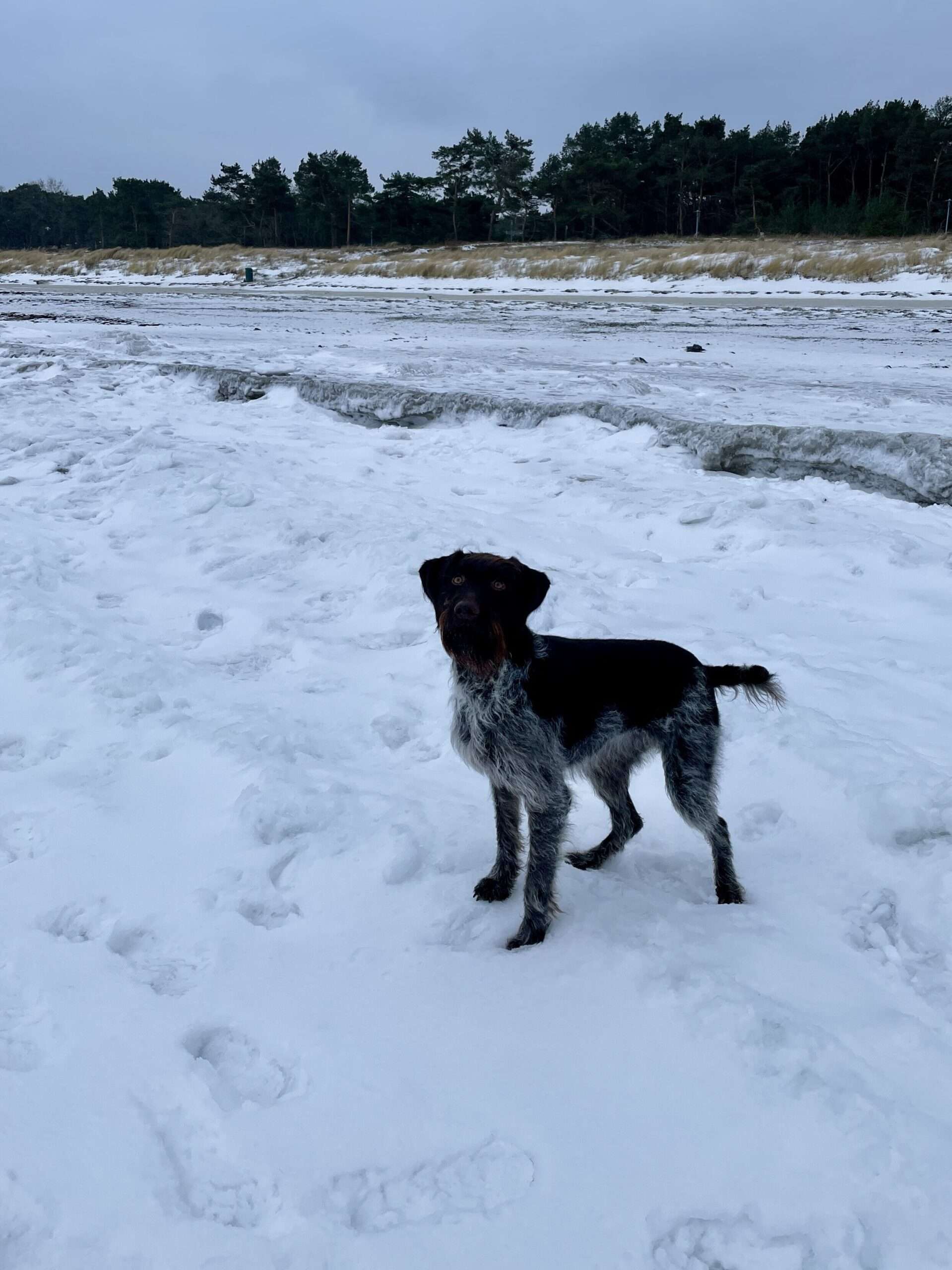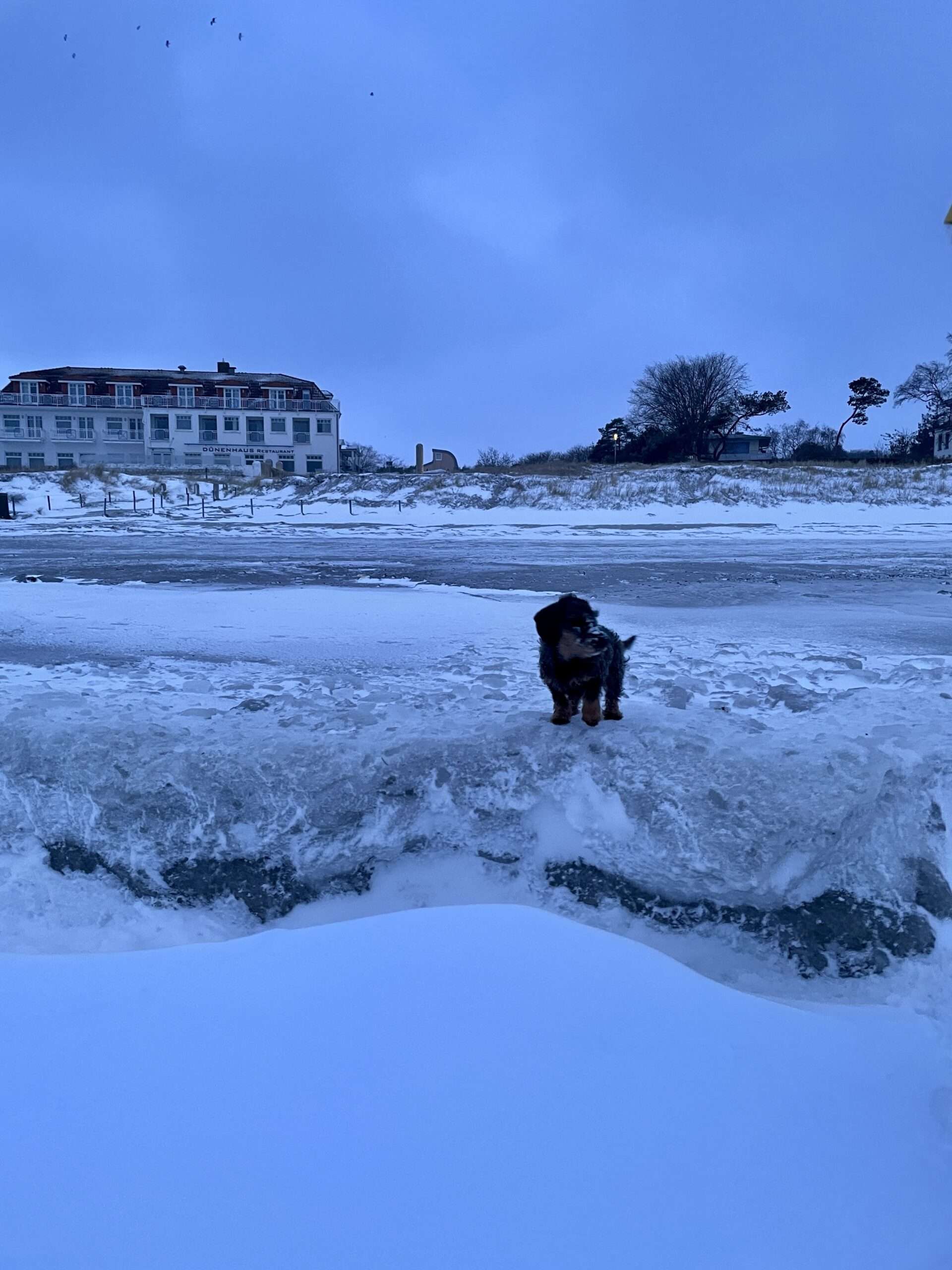 Hunde haben super Nasen und riechen Sachen auf dem Eis, davon haben wir keine Ahnung. Wenn der Dackel nicht zurück kommt, musst Du hin, 80 m oder so… . Dann doch lieber Wurzelreste am Strand betrachten.