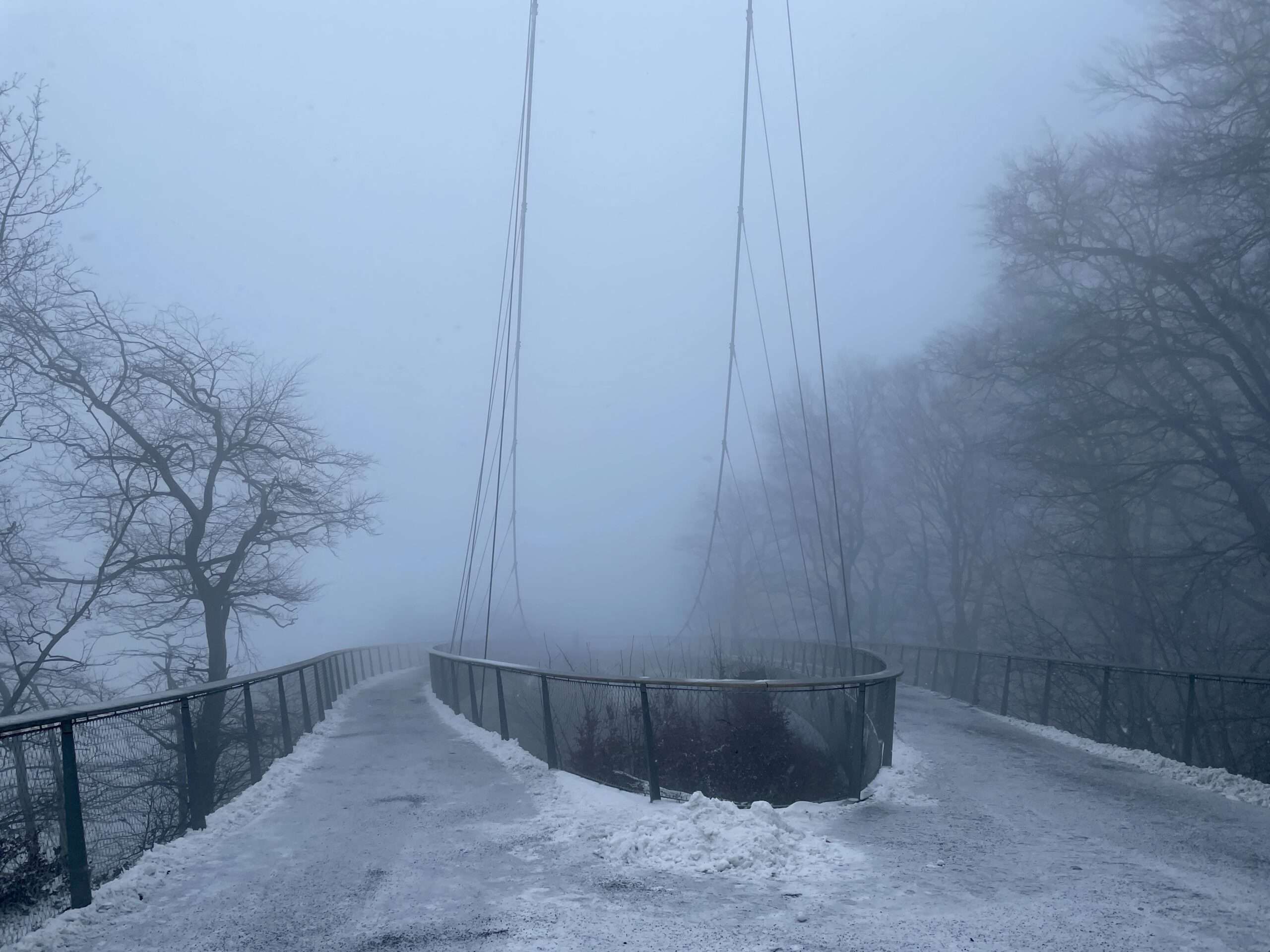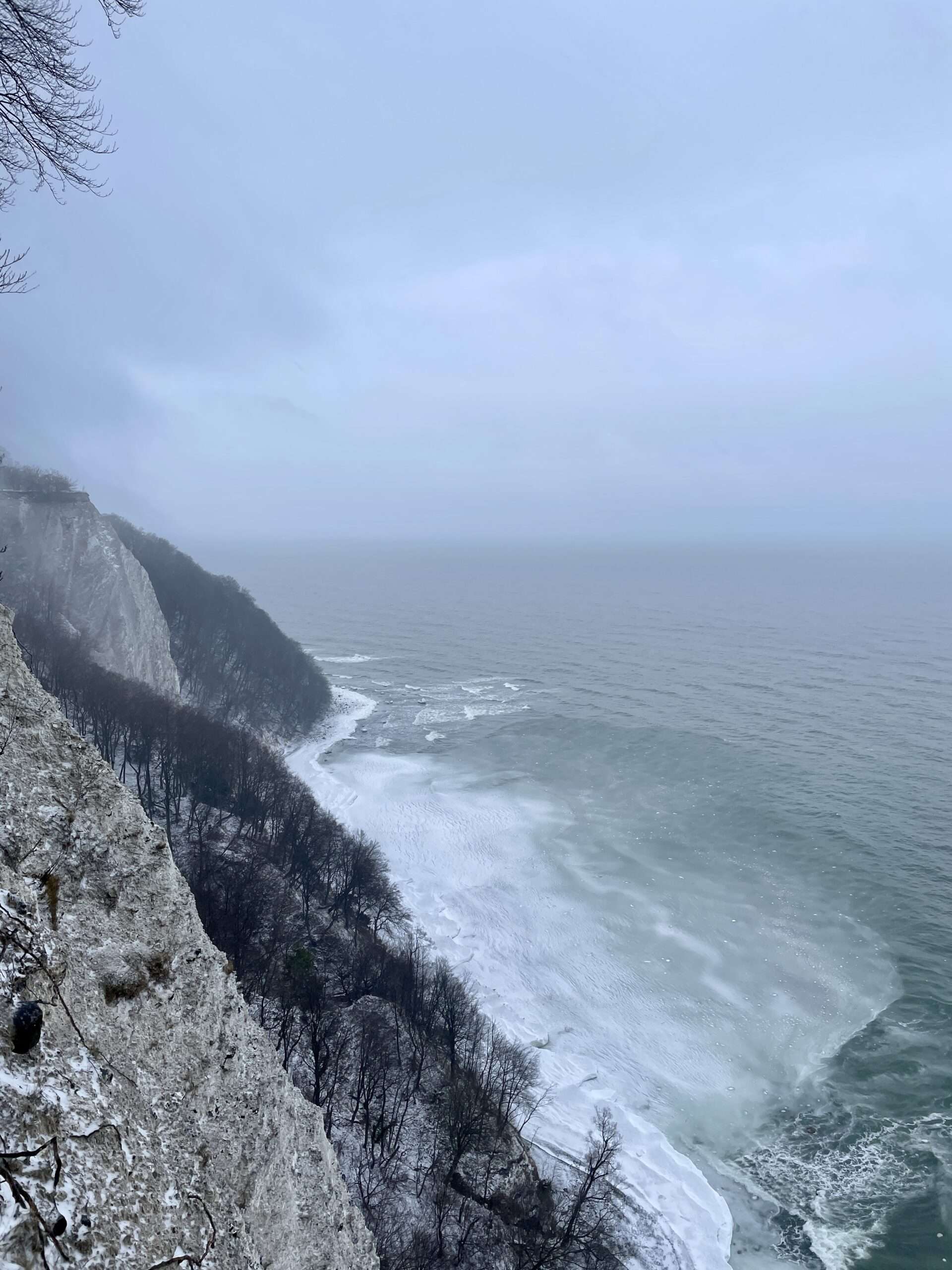 Anders sieht es im Nationalpark-Zentrum Königsstuhl aus. Erst Nebel, dann Meer, wieder viel Wind, dafür wenig Eis. Irgendwie ziehen sich Muster der Wellen mit ihrer Gischt in den Schichten der verschneiten Schlucht weiter fort: Spannende Erdgeschichte, von der wir eigentlich viel zu wenig wissen. Ich suche mal nach dem Buch, welches die Erdgeschichtsdozentin empfohlen hat. Bis ich es finde, wird wohl dieses gelesen werden: Urwelten: Eine Reise durch die ausgestorbenen Ökosysteme der Erdgeschichte. (0°C/ -2°C, Glatteis und Wind)
