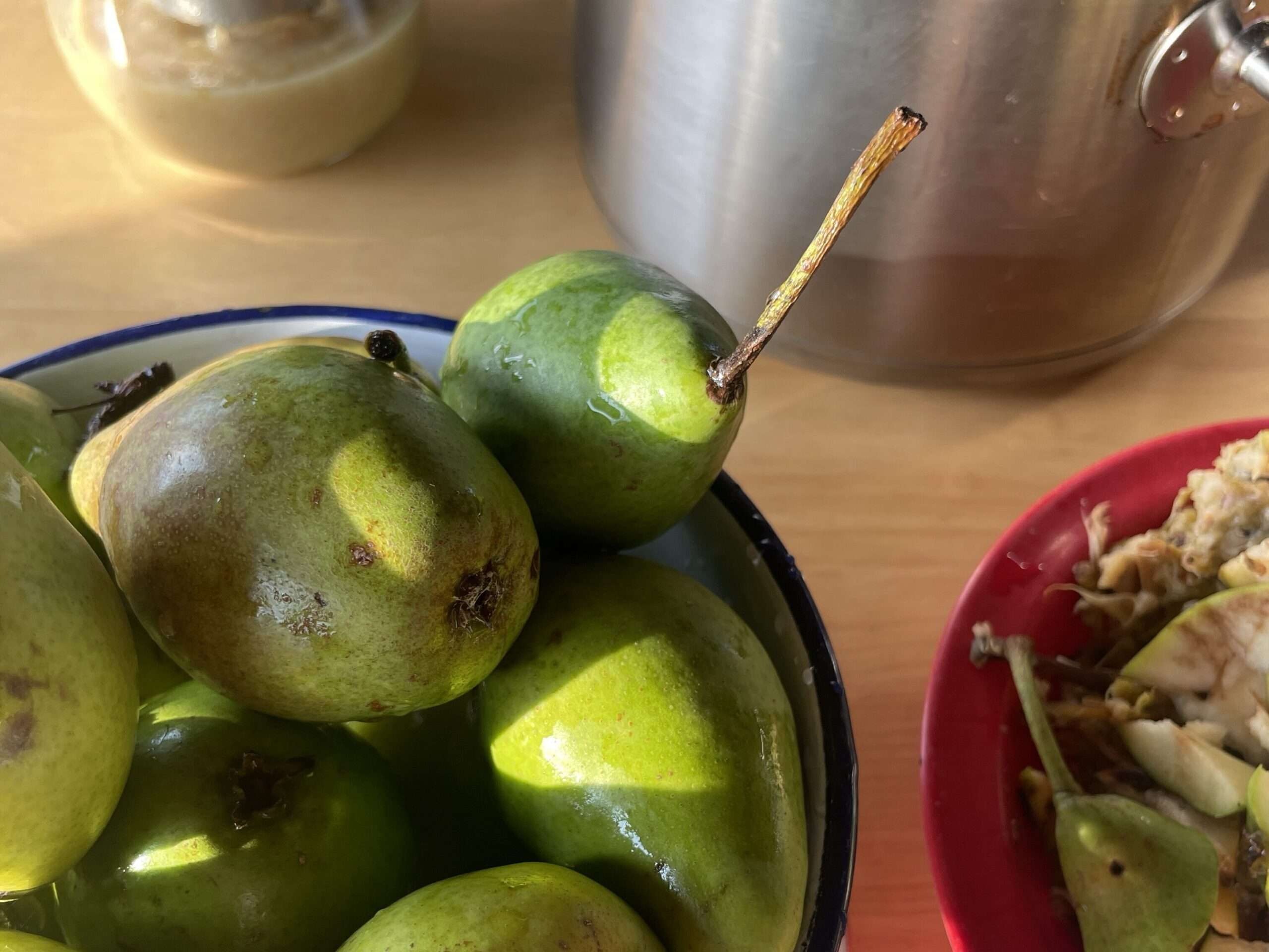 In diesem Jahr gab es viele Birnen aus der Natur als Fallobst. Für viele sind sie eine Last, weil sie Wespen anziehen und zusammengeklaubt werden müssen… für sind sie mich ein Anlass, eine kleine Sammelaktion zu veranstalten und etwas Sinnvolles daraus zu machen. Es muss nicht kompliziert sein: ein paar Utensilien, etwas Zeit und Liebe, und schon entstehen köstliche Vorräte für den Winter.